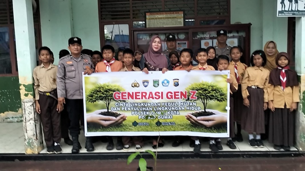 DIRGANUSANTARA.COM-D U M A I – Polsek Dumai Kota menggelar kegiatan penanaman pohon dalam rangka Gerakan Gen Z Cinta Lingkungan, Peduli Hutan, dan Penyuluhan Lingkungan Hidup di SDN 003 Kelurahan Sukajadi, Kecamatan Dumai Kota pada Sabtu (06/09/2025).
